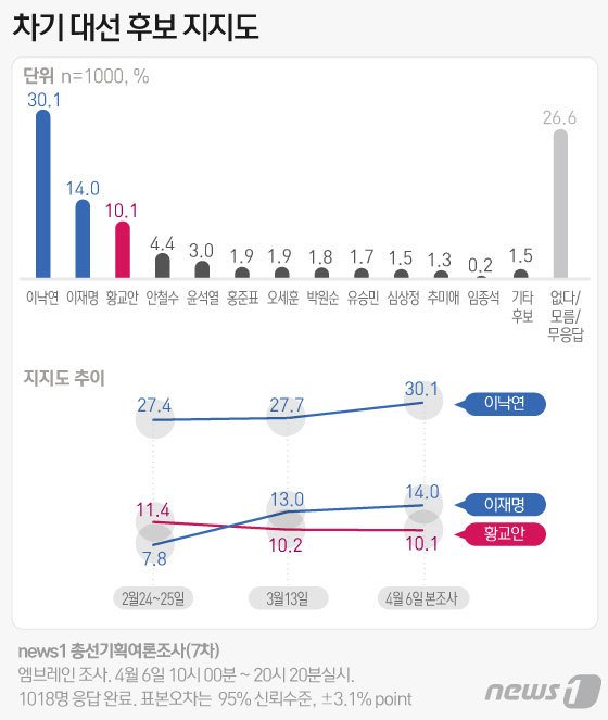 민주당 대선후보 경선 연기 가시화 후보 6인 토론회 취소 지지율 추이 0 20210717. 차기 대권 지지도윤석열 324 이재명 241 이낙연 149. 9일 매일경제MBN 의뢰로 알앤써치가 실시한 국민의힘 대선후보 적합도 조사에서 홍 의원은 윤 전 총장을 10포인트 차이로 누르고 1위에 올랐다.