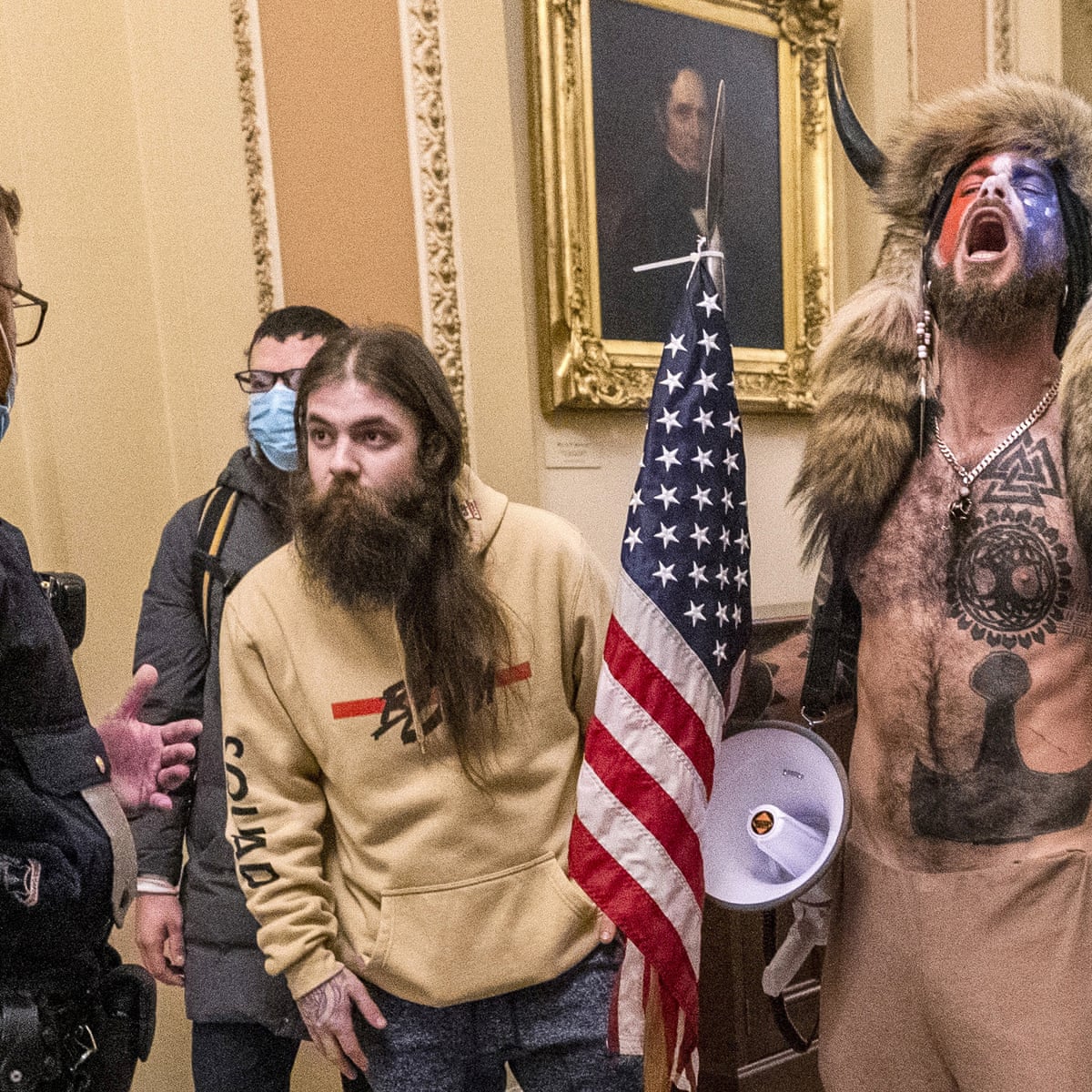 Jacob Chansley also known as the QAnon Shaman at the Stop the Steal rally in Washington DC on January 6. The Justice Department had called for Chansley to receive a harsh sentence as a way to set an example among the January 6 rioters and prosecutors have positioned Chansley as emblematic of a barbaric crowd. Chansley struck a deal to plead guilty to one count of obstruction for his role in the January 6 Capitol insurrection.